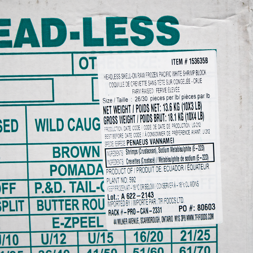 Ingredients: Shrimp, Sodium Metabisulphite