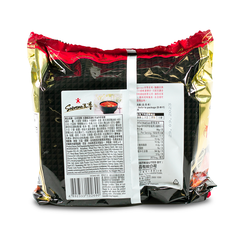 Noodles: Wheat Flour, Palm Oil, Tapioca Starch, Salt, Acidity Regulator (500, 451, 330), Garlic Powder, Thickener (405), Colour (100), Antioxidant (320, 321).